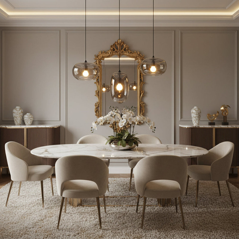 - Add accent pieces such as console tables or luxury benches for balance