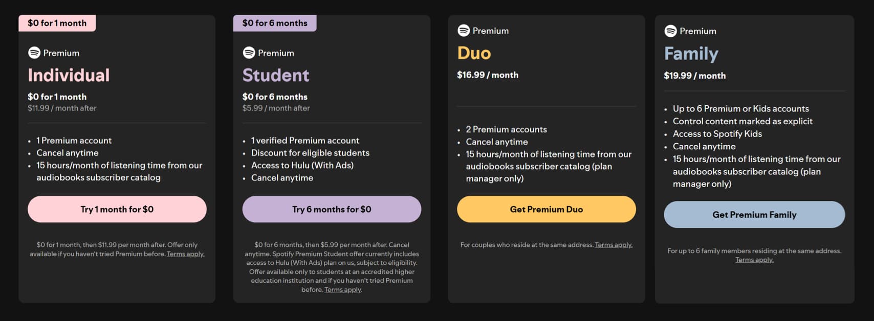 Overall, all Premium plans (Individual, Duo, Family, Student) share the same core features. The main differences are in the number of accounts, target audience, and pricing. For those who prioritize audiobooks and don’t mind limited music access, Audiobooks Access is the best choice.